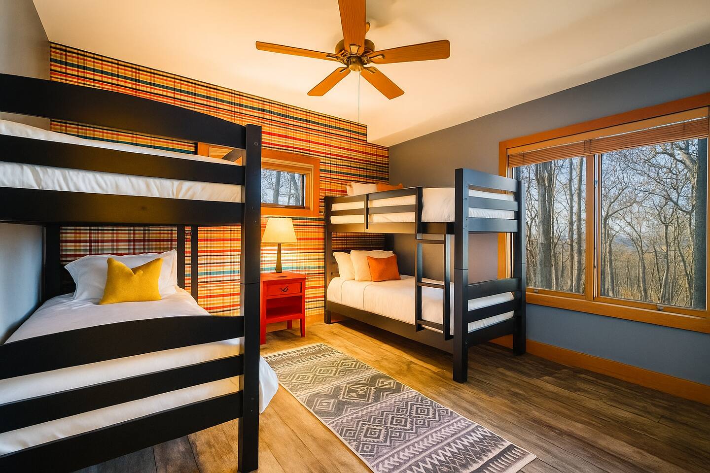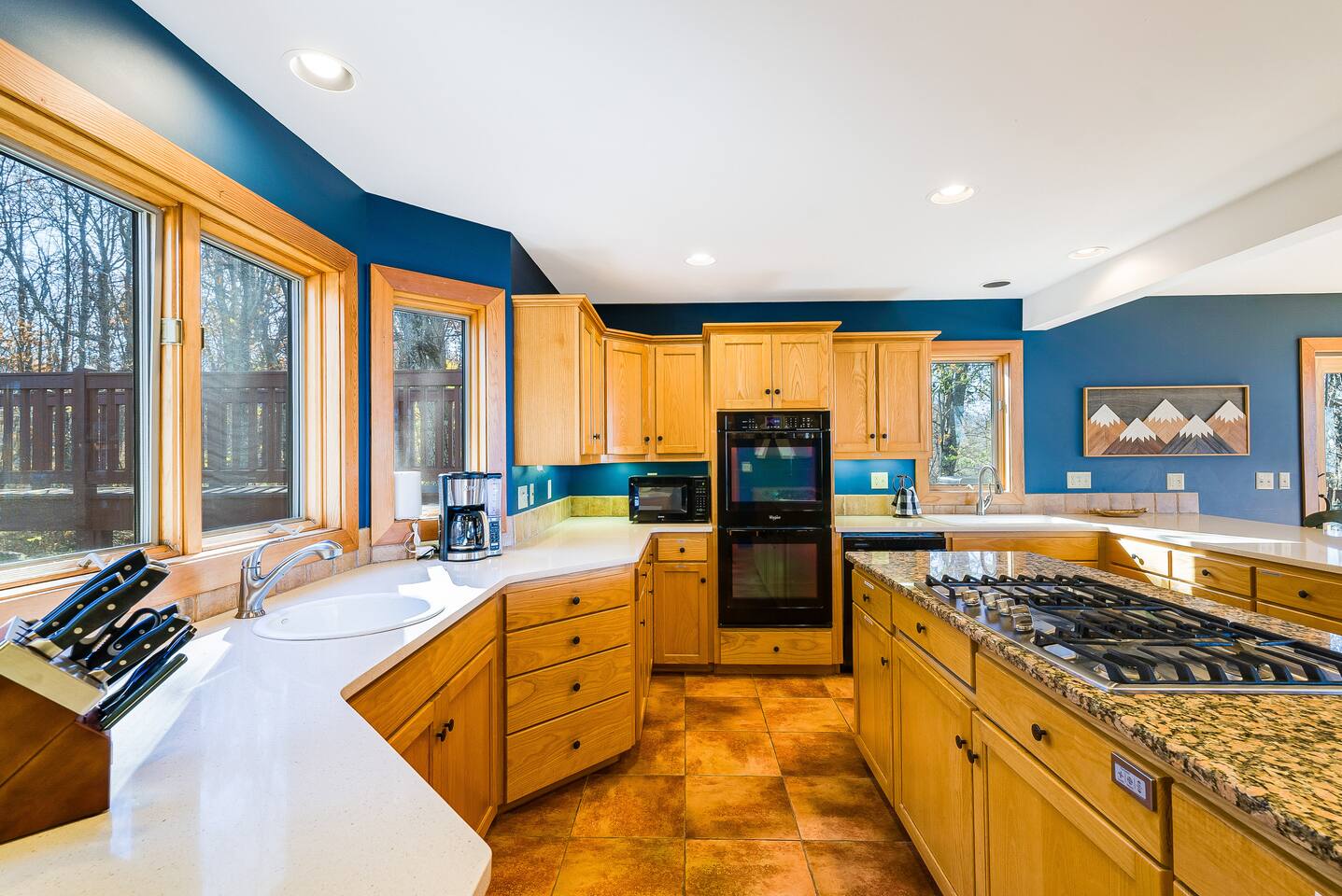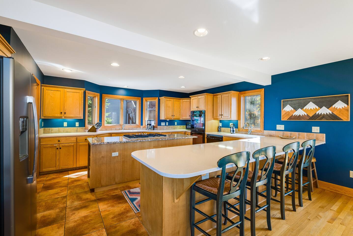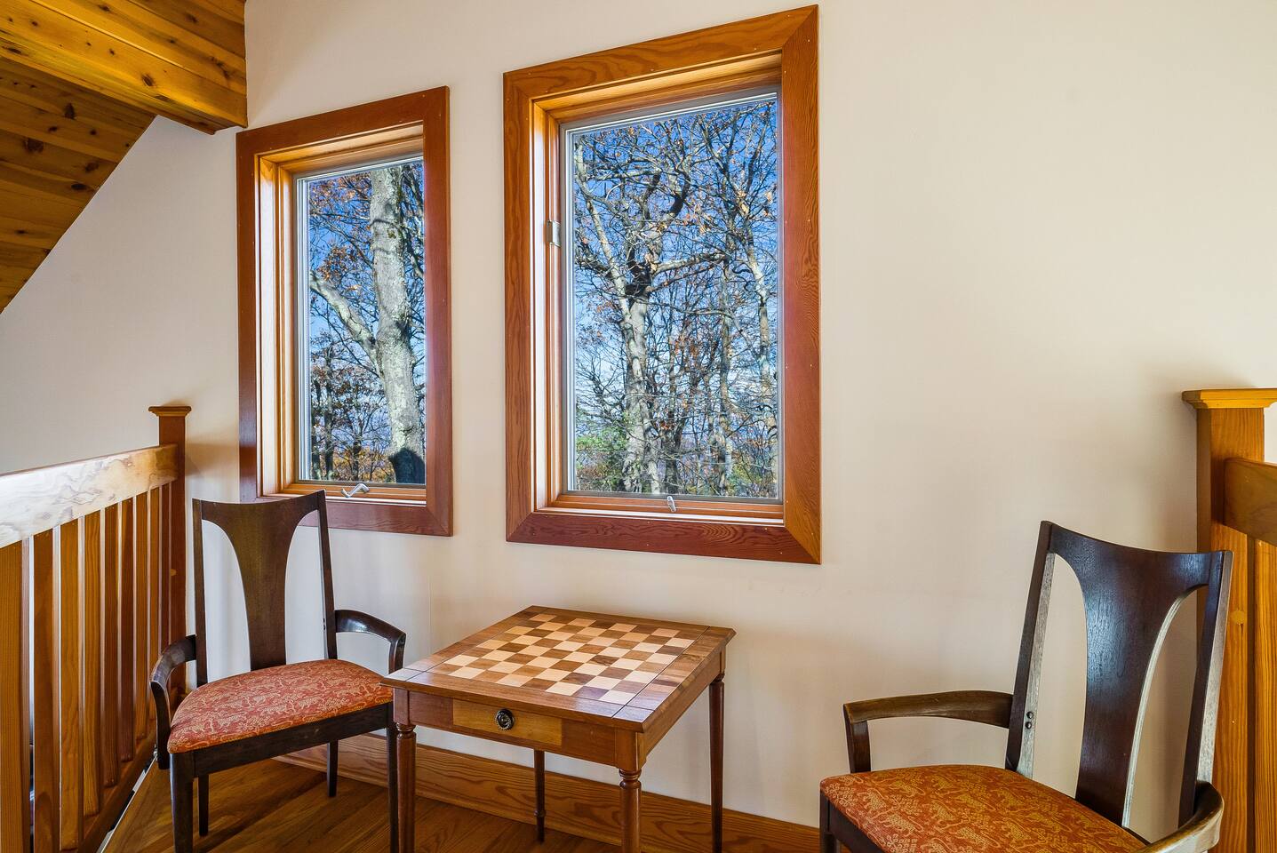 Escape to the mountains at this 5BR/4.5BA home in Wintergreen! Enjoy breathtaking Blue Ridge Mountain views, cozy evenings by the firepit, 8-person hot tub, and direct trail access to the Old Appalachian Trail right from your backyard. Perfect for families, groups, and outdoor lovers. Spacious & Fun: There is a main house and "tree house" over the garage accessible from the deck off of the main house. The main floor of the main house features an open living room with ample seating, open kitchen and dining room and half bath. The upstairs features two bedrooms; one king and one twin bunkbed. The downstairs features another living space with rock climbing wall and two bedrooms; one king and one with two bunk beds. The treehouse has one bedroom with bathroom. Gather Together: The large kitchen is fully equipped for group cooking and flows into a dining area with seating for 14 - perfect for family meals and game nights. After exploring, unwind on the deck with a glass of wine and take in the mountain sunset. Sleeping Arrangements: 4 bedrooms in the main house and 1 bedroom in the treehouse. • 2 upstairs in main house: King bed w/ ensuite bathroom + twin bunk bed room • 2 downstairs in main house: King bed w/ ensuite bathroom + 2 twin bunk beds room w/ bathroom outside room • 1 treehouse: King bed and twin bed with trundle with full bath (4.5 bathrooms total) Extras You’ll Love: • Garbage removal service (no trash hauling!) • Washer & dryer • Plenty of parking Adventure Awaits: Step right onto the yellow-blazed trail that connects to the Old Appalachian Trail. Stunning overlook 1/5 mile from the house. Book your stay and enjoy mountain views, outdoor adventure, and indoor fun for everyone.