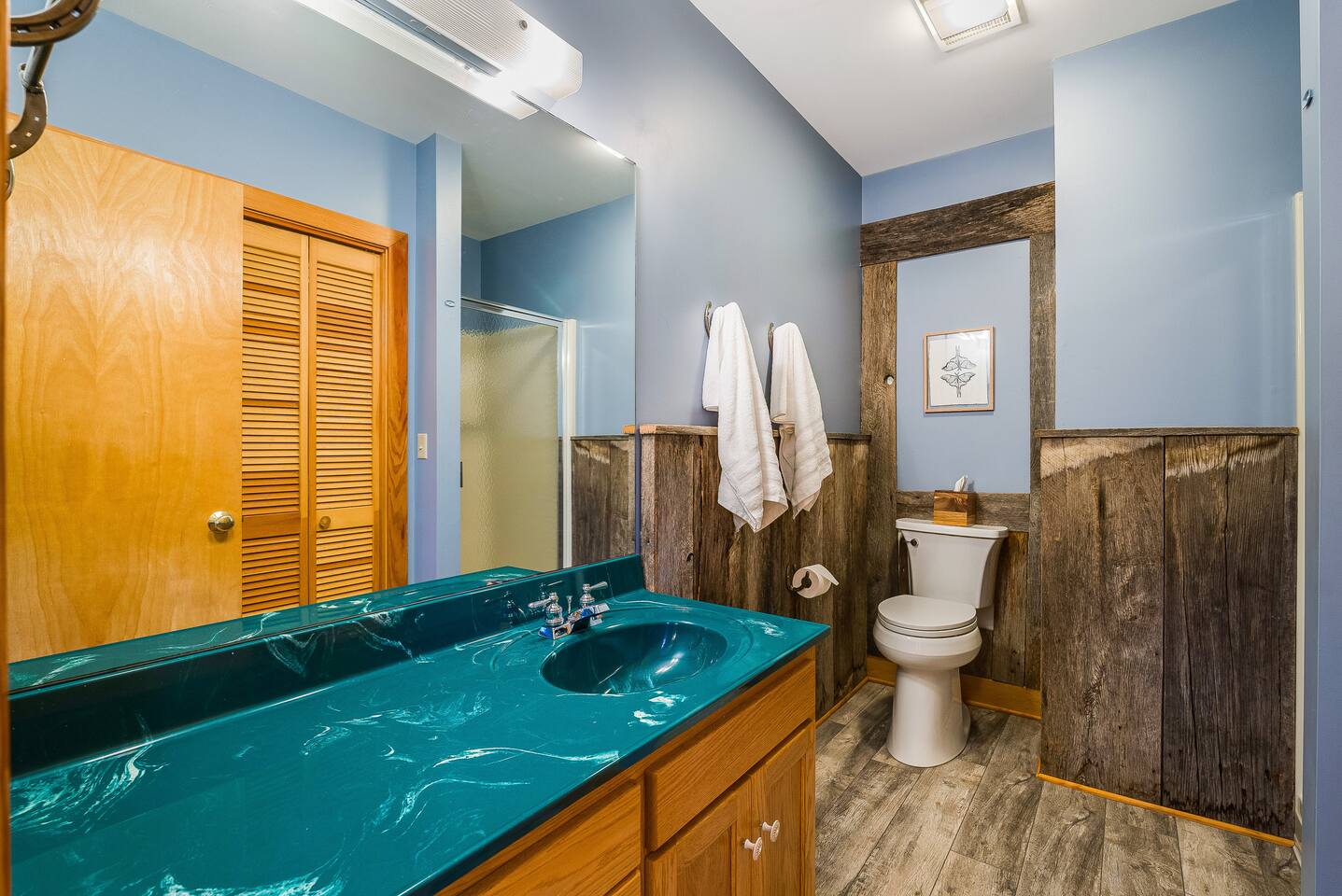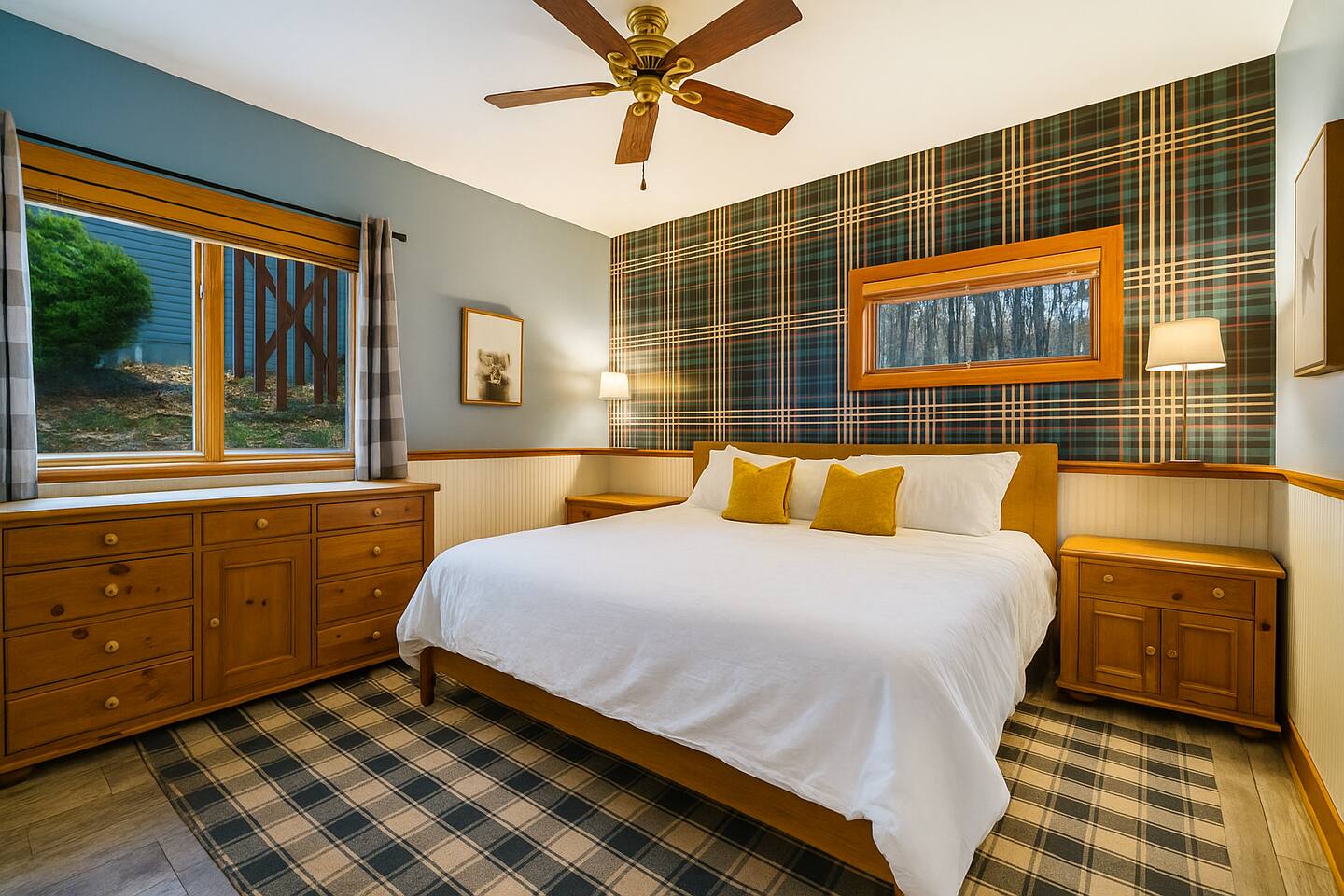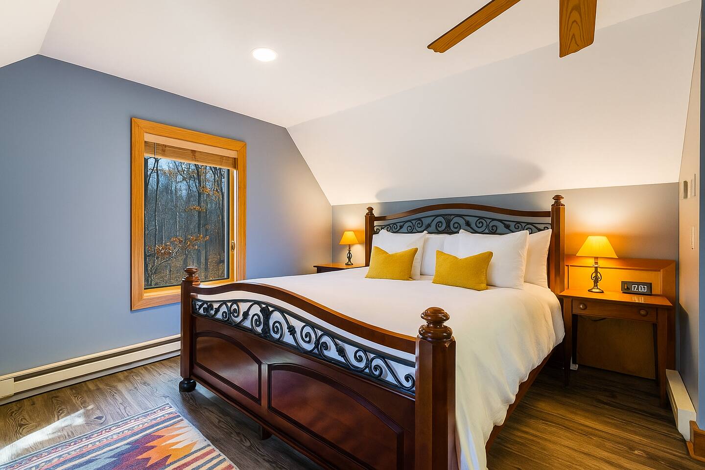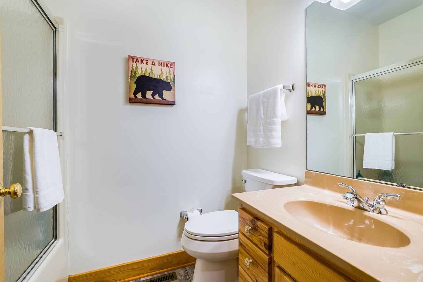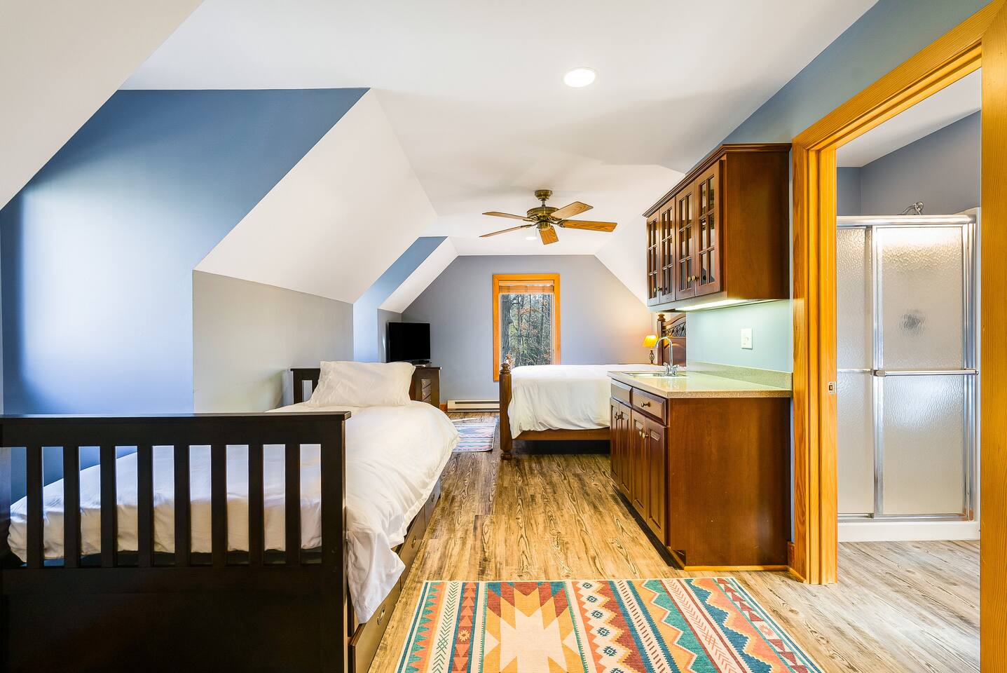Escape to the mountains at this 5BR/4.5BA home in Wintergreen! Enjoy breathtaking Blue Ridge Mountain views, cozy evenings by the firepit, 8-person hot tub, and direct trail access to the Old Appalachian Trail right from your backyard. Perfect for families, groups, and outdoor lovers. Spacious & Fun: There is a main house and "tree house" over the garage accessible from the deck off of the main house. The main floor of the main house features an open living room with ample seating, open kitchen and dining room and half bath. The upstairs features two bedrooms; one king and one twin bunkbed. The downstairs features another living space with rock climbing wall and two bedrooms; one king and one with two bunk beds. The treehouse has one bedroom with bathroom. Gather Together: The large kitchen is fully equipped for group cooking and flows into a dining area with seating for 14 - perfect for family meals and game nights. After exploring, unwind on the deck with a glass of wine and take in the mountain sunset. Sleeping Arrangements: 4 bedrooms in the main house and 1 bedroom in the treehouse. • 2 upstairs in main house: King bed w/ ensuite bathroom + twin bunk bed room • 2 downstairs in main house: King bed w/ ensuite bathroom + 2 twin bunk beds room w/ bathroom outside room • 1 treehouse: King bed and twin bed with trundle with full bath (4.5 bathrooms total) Extras You’ll Love: • Garbage removal service (no trash hauling!) • Washer & dryer • Plenty of parking Adventure Awaits: Step right onto the yellow-blazed trail that connects to the Old Appalachian Trail. Stunning overlook 1/5 mile from the house. Book your stay and enjoy mountain views, outdoor adventure, and indoor fun for everyone.