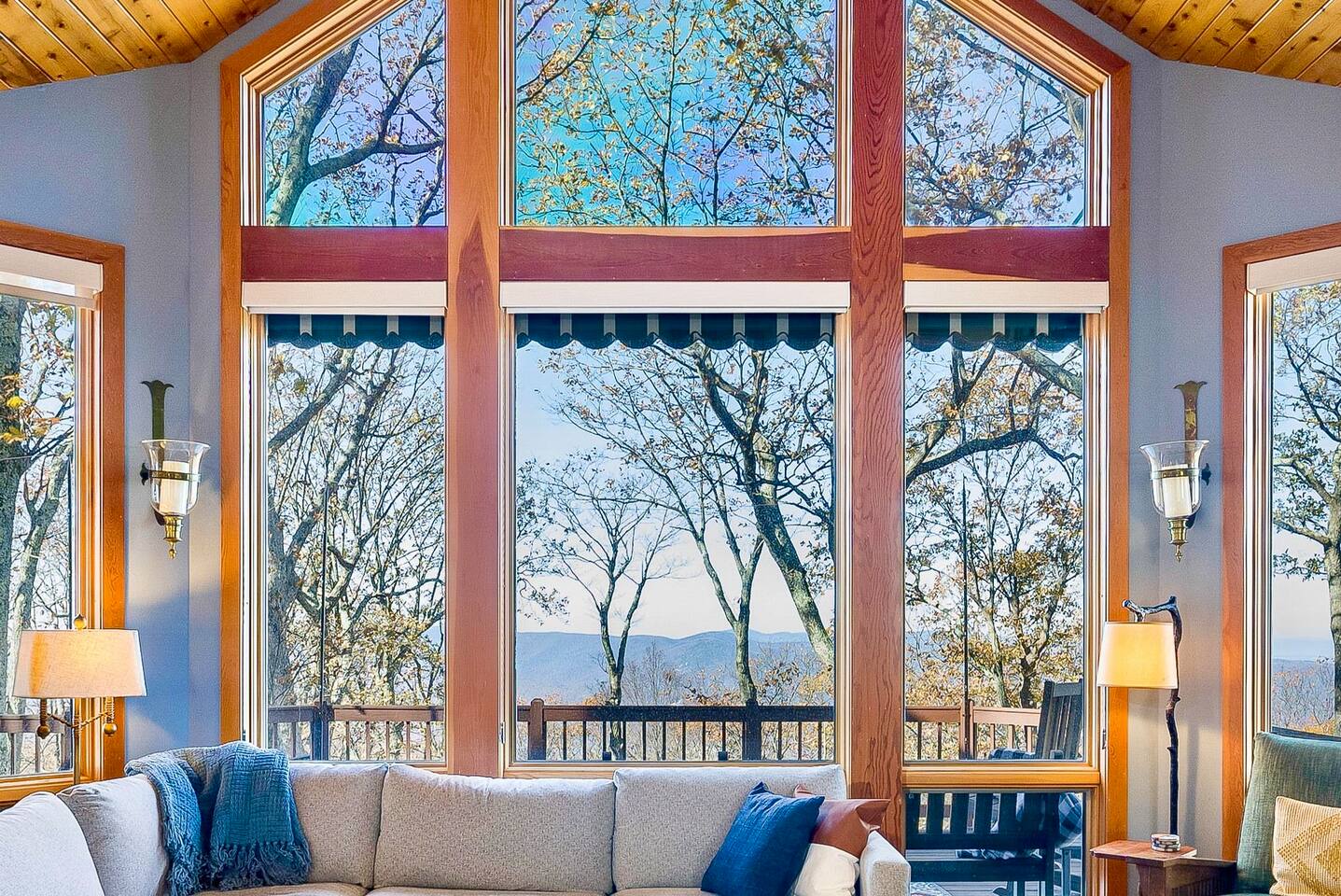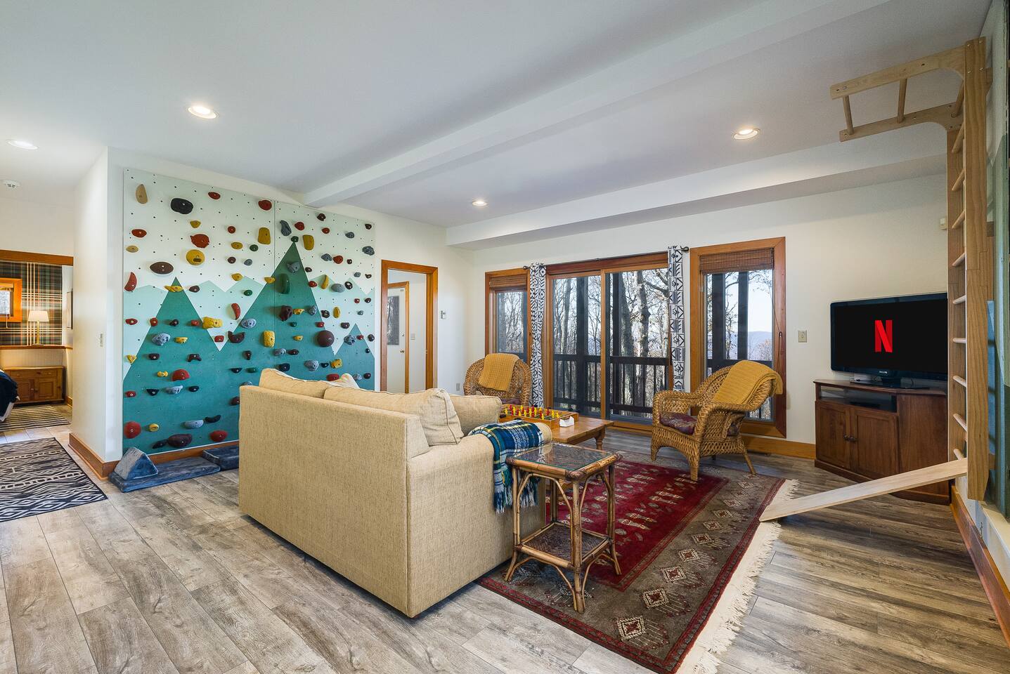 Stunning Blue Ridge mountain views, 5 bedrooms, two living areas, and a rock climbing wall! Top deck firepit, hot tub, fully equipped kitchen, dining for 14, and backyard access to the Old Appalachian Trail. Perfect for families, friends, and outdoor lovers!